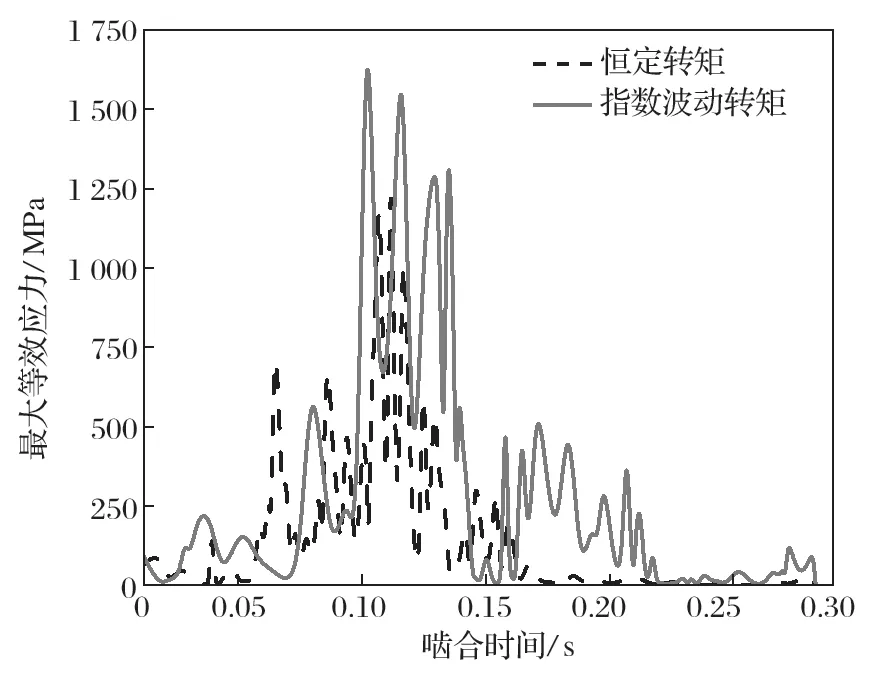圖14 恒定轉(zhuǎn)矩與指數(shù)波動(dòng)轉(zhuǎn)矩zui大等效應(yīng)力的對(duì)比