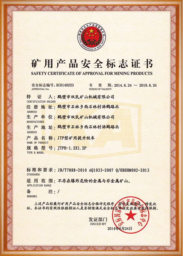 礦用產品安全標志證書