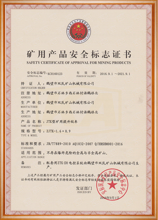 礦用產品安全標志證書